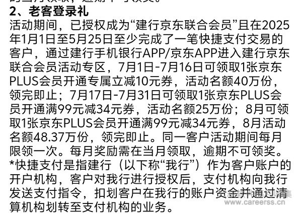 A-A+ 京东plus联合会员续费99元减34,实付65 2025年09月01日 原创文章, 羊毛战记 暂无评论 阅读 554 views 次 京东搜 联合会员 需建行卡(可得8元)火爆多刷新几次 京东PLUS到期了,今天发现京东plus联合会员续费99元减34来了! 合计最终花65续费。 京东plus联合会员续费99元减34,点击开通后结算页面直接跳出65元优惠后的价格。 另外,如果是深圳用户,新开户客户还能得到奖励10元京东支付券。